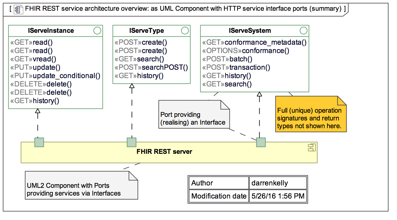 A FHIR REST server is any software that implements the FHIR APIs and uses FHIR resources to exchange data. The diagram below describes the FHIR interface definitions. The methods are classified as: