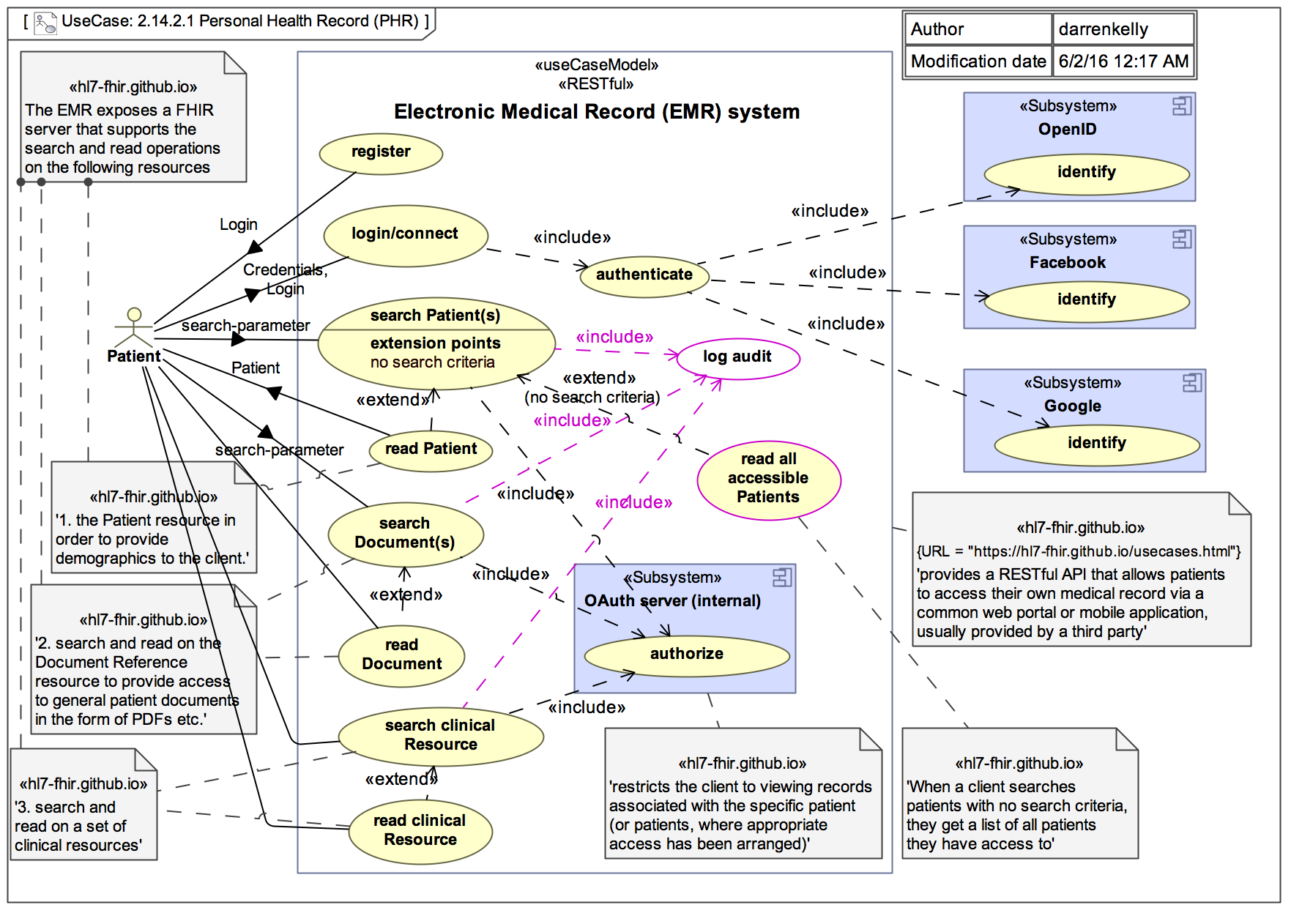 • Usage – the component of FHIR addressing the use of FHIR in a run-time capacity