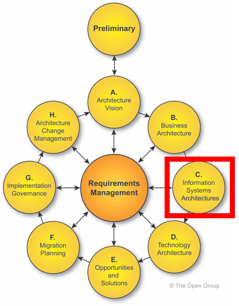 From a TOGAF perspective icon, FHIR addresses aspects of architecture views related to information model definition and data exchange, which are described in the Information Systems Architectures portion of the TOGAF Architecture Development Method.