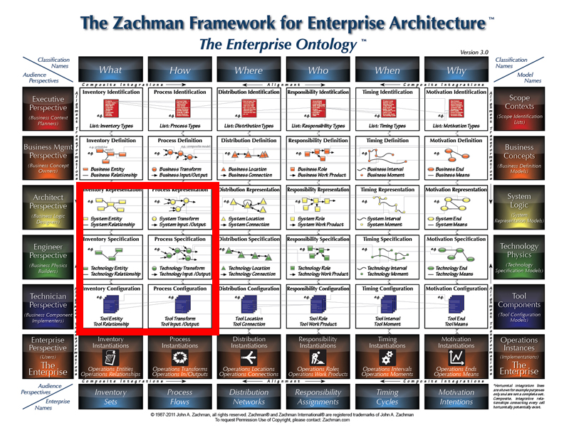 With regards to the Zachman Framework icon, FHIR fits within the What and the How dimensions of the Architect, Engineer and Technician Perspectives
