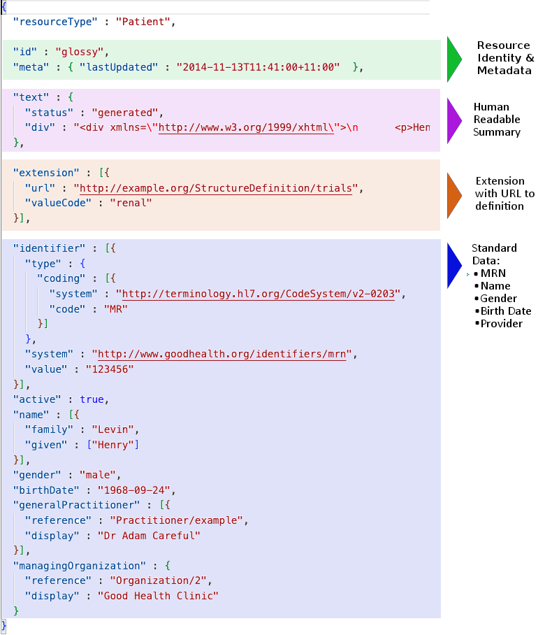 In addition, each resource carries a human-readable text representation using html as a fall-back display option for clinical safety. This is particularly important for complex clinical information where many systems take a simple textual/document based approach.