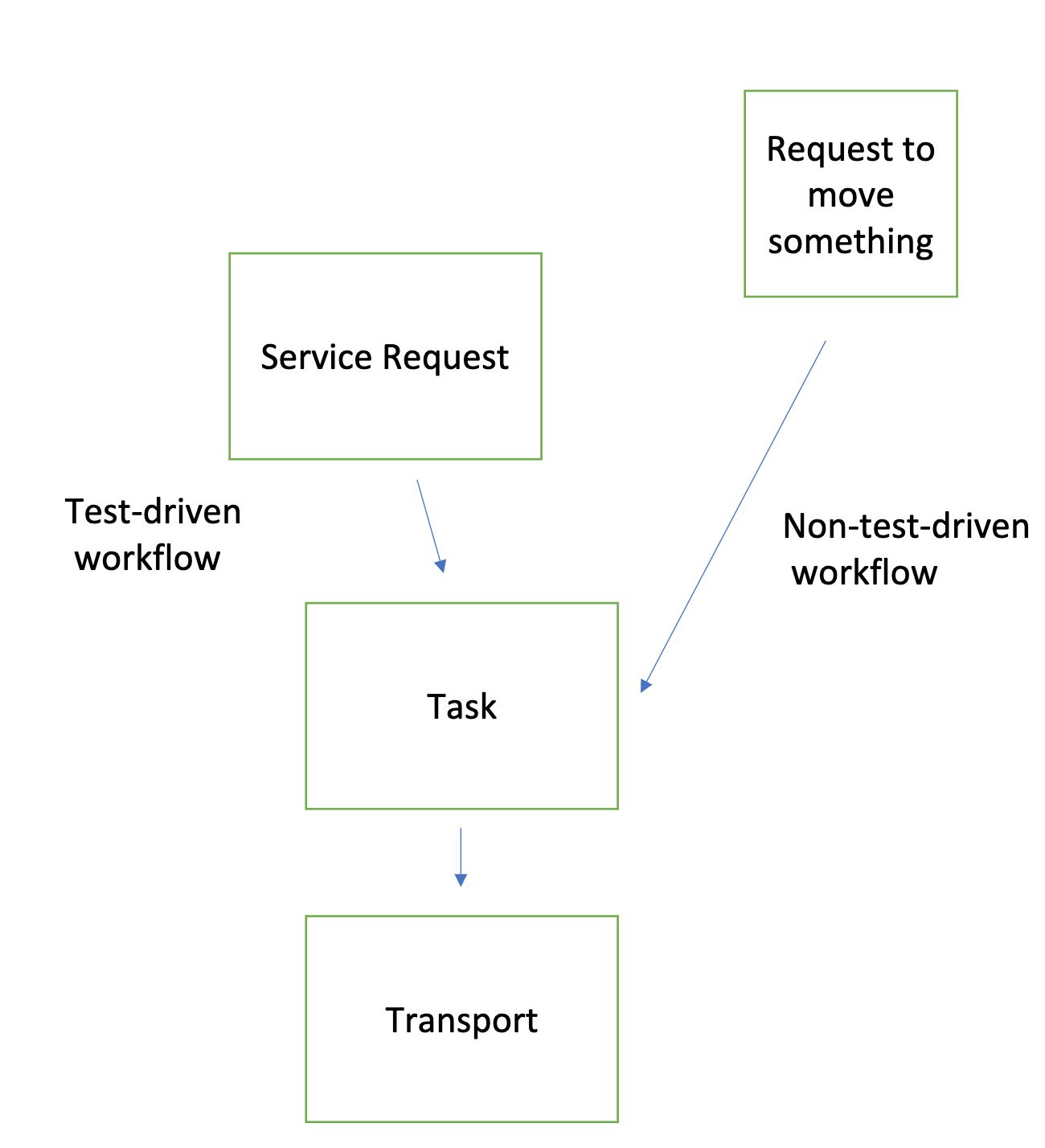 The Transport resource can be requested by a ServiceRequest or by a Task, as shown in the diagram below. Also, this resource is only for the documentation of the physical movement of material items (people, animals, things). To operationalize the movement of people and things, Task should be used. Provenance can be used to document the steps but that is for the resource aspect, not the actual movement history of the item. During the movement of a patient, the business status (change in the level of care/patient class) might change. To allow for the capture of the current business status of the patient, the reason element should be used.