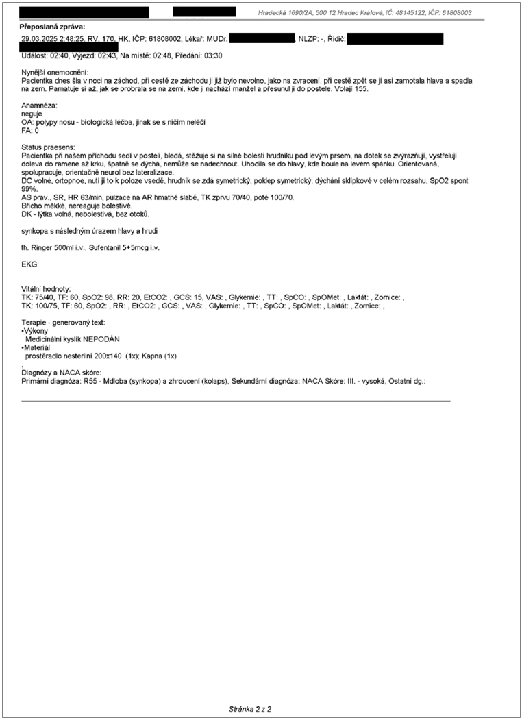 Obr. 3: Tisková sestava výjezdové zprávy vytvořené v systému EZD (Druhá strana)
