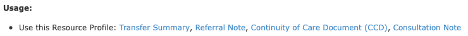 C-CDA Templates are represented as Resource Profiles in the Implementation Guide. For the rest of this document, we will use Templates to refer to what is published in the original specification and Profiles to refer to what is published in the new web publication. There are several different ways of viewing a Resource Profile. The most useful tab is the Differential Table, but the Text Summary does provide some information and the Snapshot Table presents all the elements present in the template/profile.