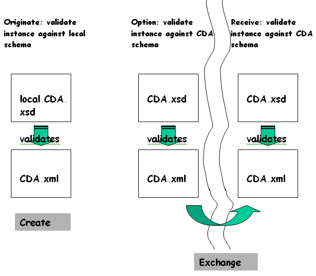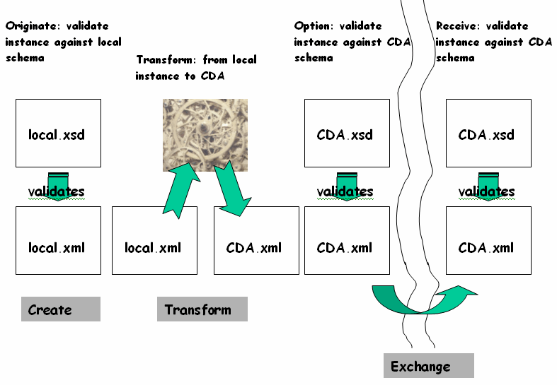 The second approach is to create a local schema and then transform the local XML instance to CDA