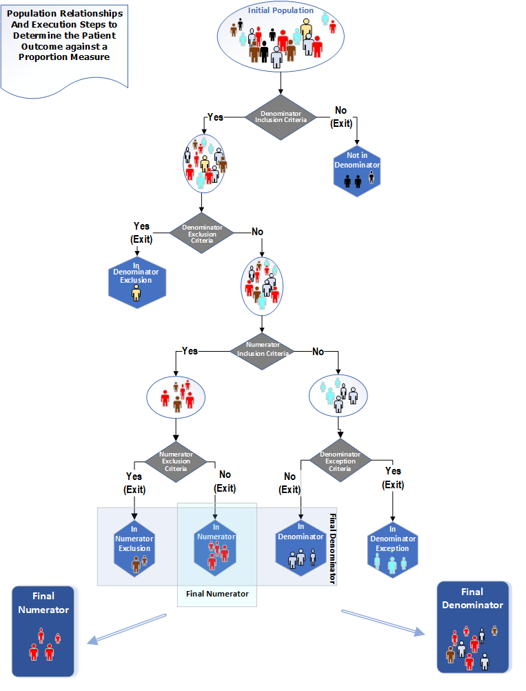 Note also that when a measure has multiple population groups, the expectation is that the measure would have multiple scores, one for each population group. The formulas for calculation of the groups do not change; they are the same as for single group measures, just calculated using the criteria for each group.