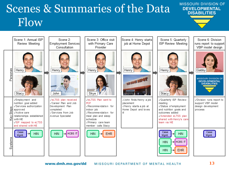 - Stacy also coordinates with Henry’s primary care provider to help inform the career planning and pre-vocational services. Dr. Smith’s primary care team looks up Henry’s health information in their Electronic Health Record system which integrates data from the Health Information Exchange System to understand his health record and sees his updated eLTSS care plan.