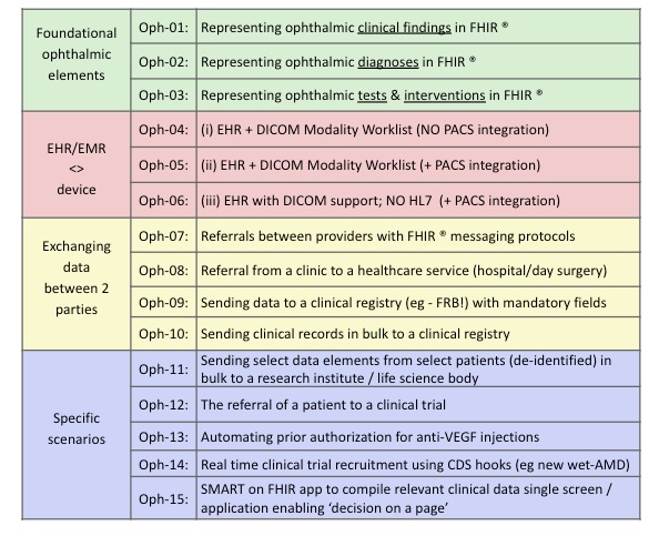 Oph-01 → Oph-06 were the primary focus of the May ‘21 technical connectathon see here