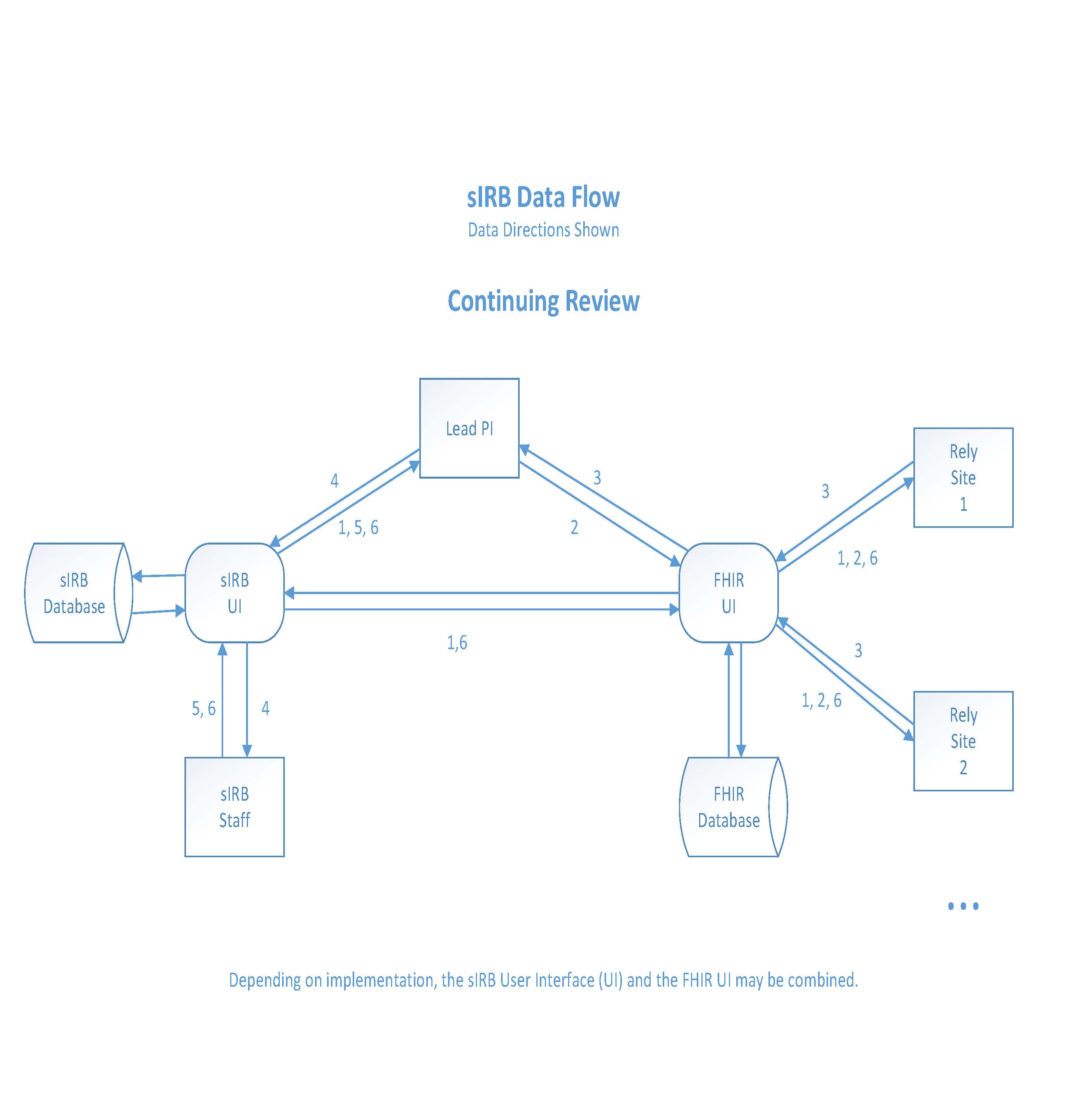 - sIRB notifies Lead PI and Relying Sites (via FHIR) of the need for a continuing review.