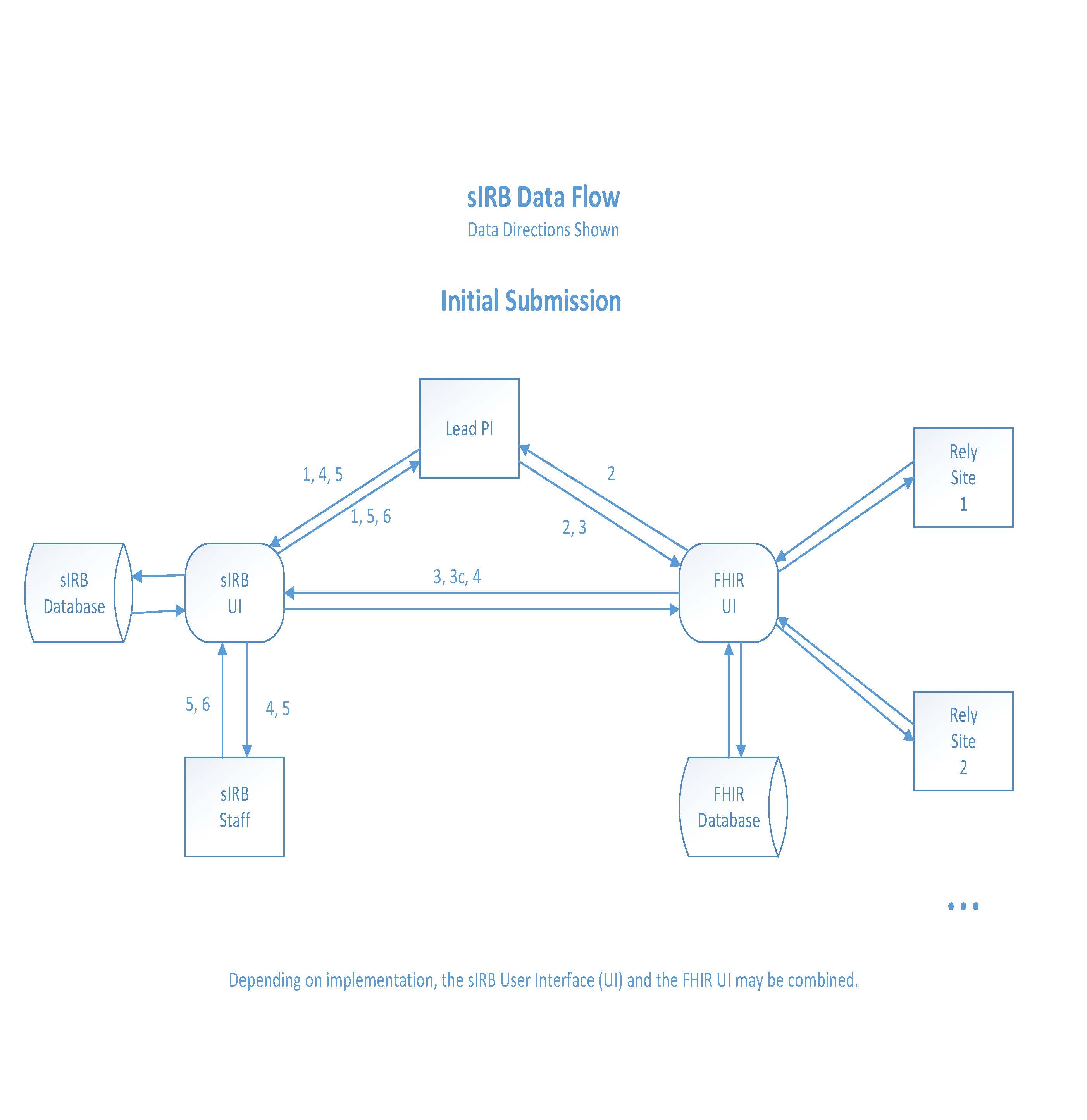 - Once IRB Study Application and associated FHIR documents are complete, the Lead PI signs off on the submission and the application with FHIR documents is sent to the sIRB for review.
