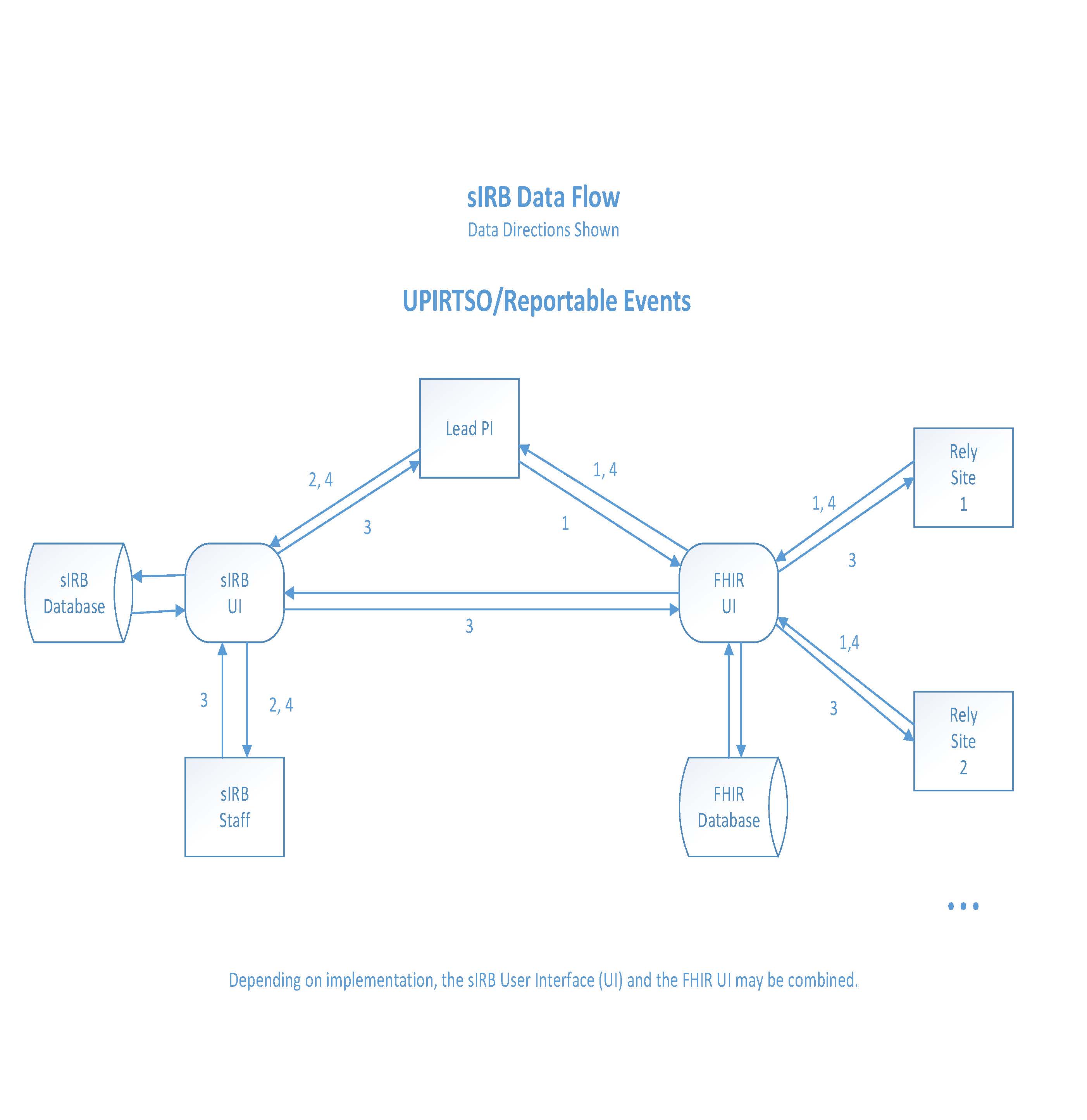 - If the Lead PI or a Relying Site experiences an event (safety or protocol violation), they send, via FHIR, the necessary information or documentation (as outlined by the sIRB) to the Lead PI.