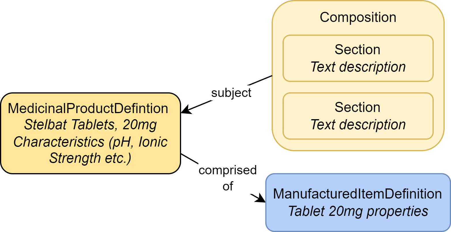 | ManufacturedItemDefinition | Information about the physical packaged medication item, such as a tablet or capsule |