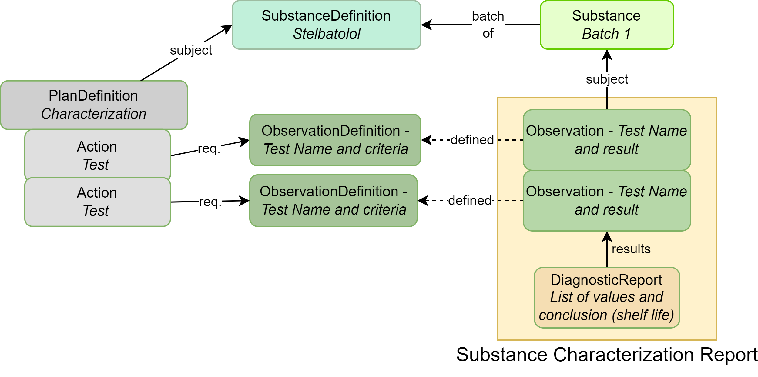 | ObservationDefinition | Each individual stability test and their acceptance criteria |