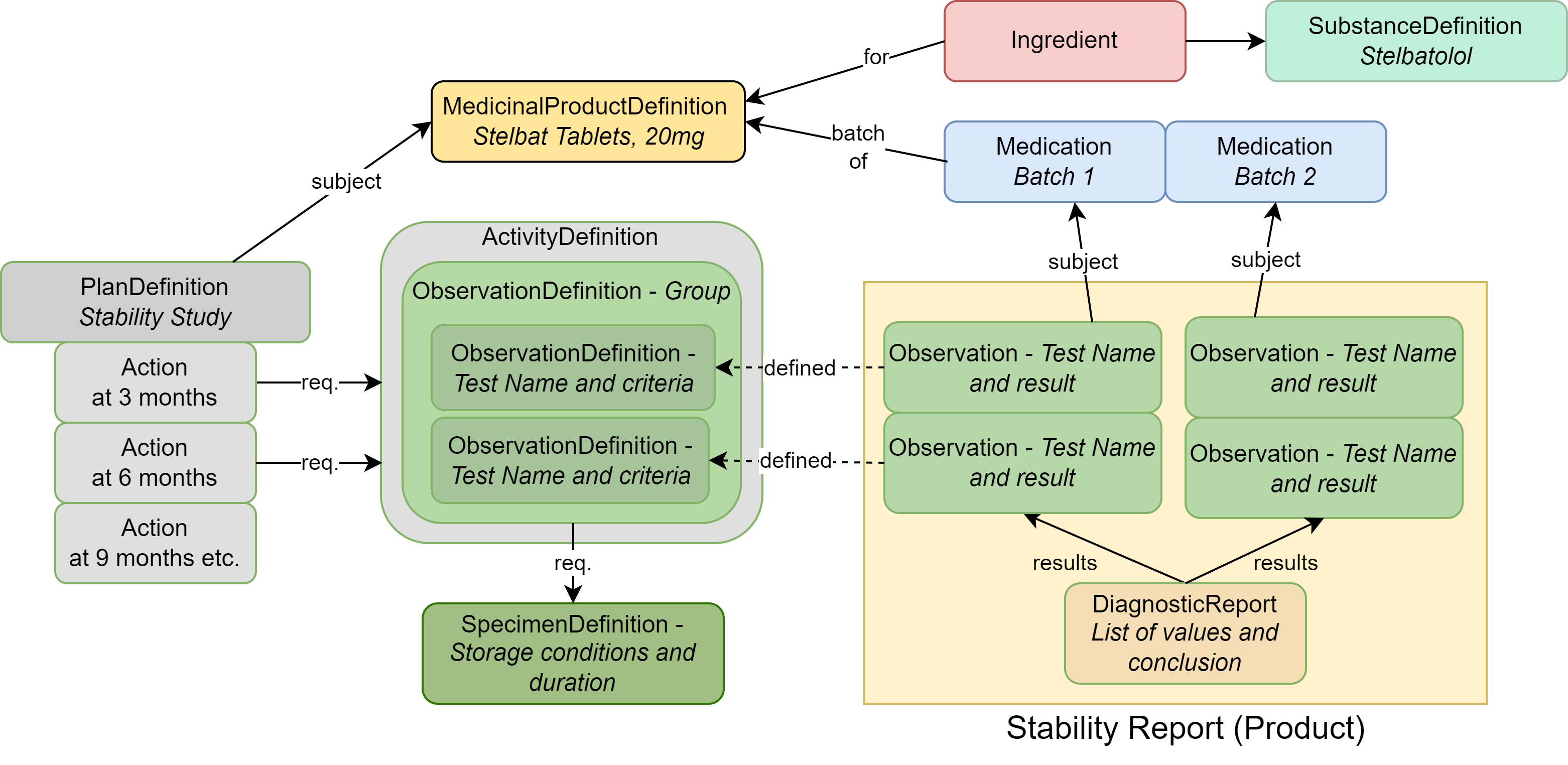 | MedicinalProductDefinition | The drug product (Stelbat tablets, 20mg) |