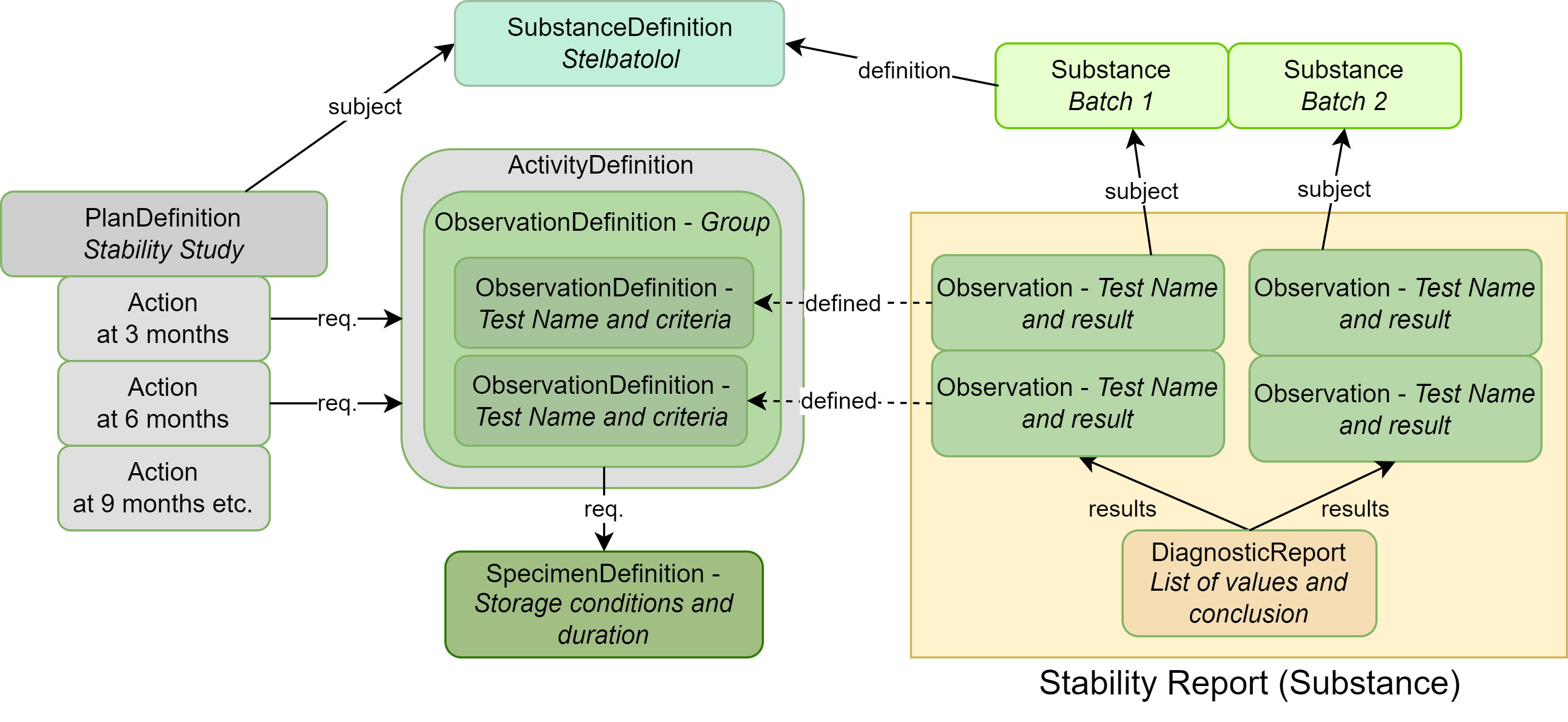 | ObservationDefinition | Each individual test and acceptance criteria; also used to group closely related tests |
