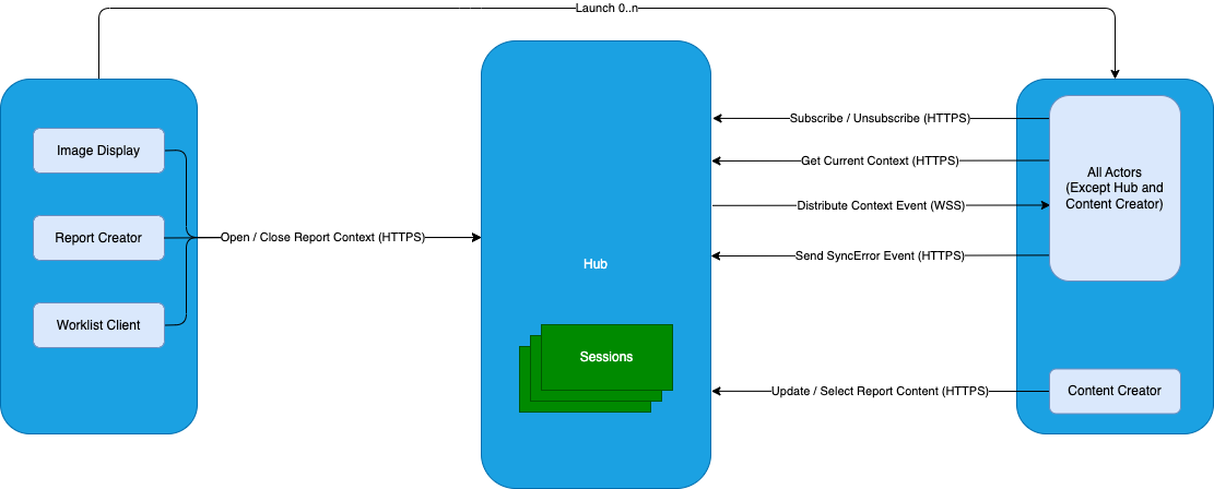 The Hub can be a standalone application or embedded within another application (e.g., the Image Manager, Report Creator and Worklist Client are grouped with the Hub independently). As a result, which Hub to use for the reporting session needs to be configurable during deployment.