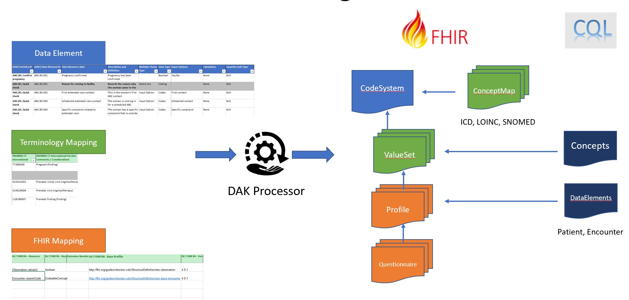 NOTE: The FHIR mappings are not part of the Digital Adaptation Kit, but are introduced as part of this implementation guide. The WHO_ANC.xlsx spreadsheet in the input/l2