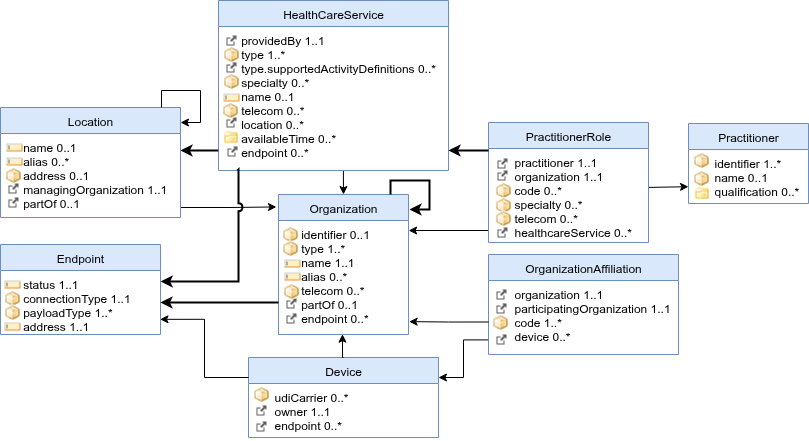 | endpoint → Endpoint | 0..* | Technical endpoints used by this organization. |